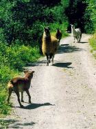 In Huben treffen in den Bergen auf eine kleine Horde von Lamas, die hier für Fleisch gezüchtet werden. Pluto ist überrascht und geht ihnen aus dem Weg.