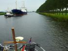 Überfahrt von Oostmahorn nach Delfzijl. Diesmal wählen wir einen anderen Kanal aus, der auch f. Handelsschiffahrt bestimmt ist und einen Bogen um die Stadt Groningen macht.