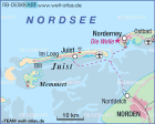Die Strecke führte von der Stadt Emden über die Insel Borkum zur Insel Juist, wo wir 4 Tage auf Boot vor der Insel in Region Bill Domäne verbrachten, bei Flut unter Anker, bei Ebbe auf Sand mit Hilfe von 2 Wattstützen.